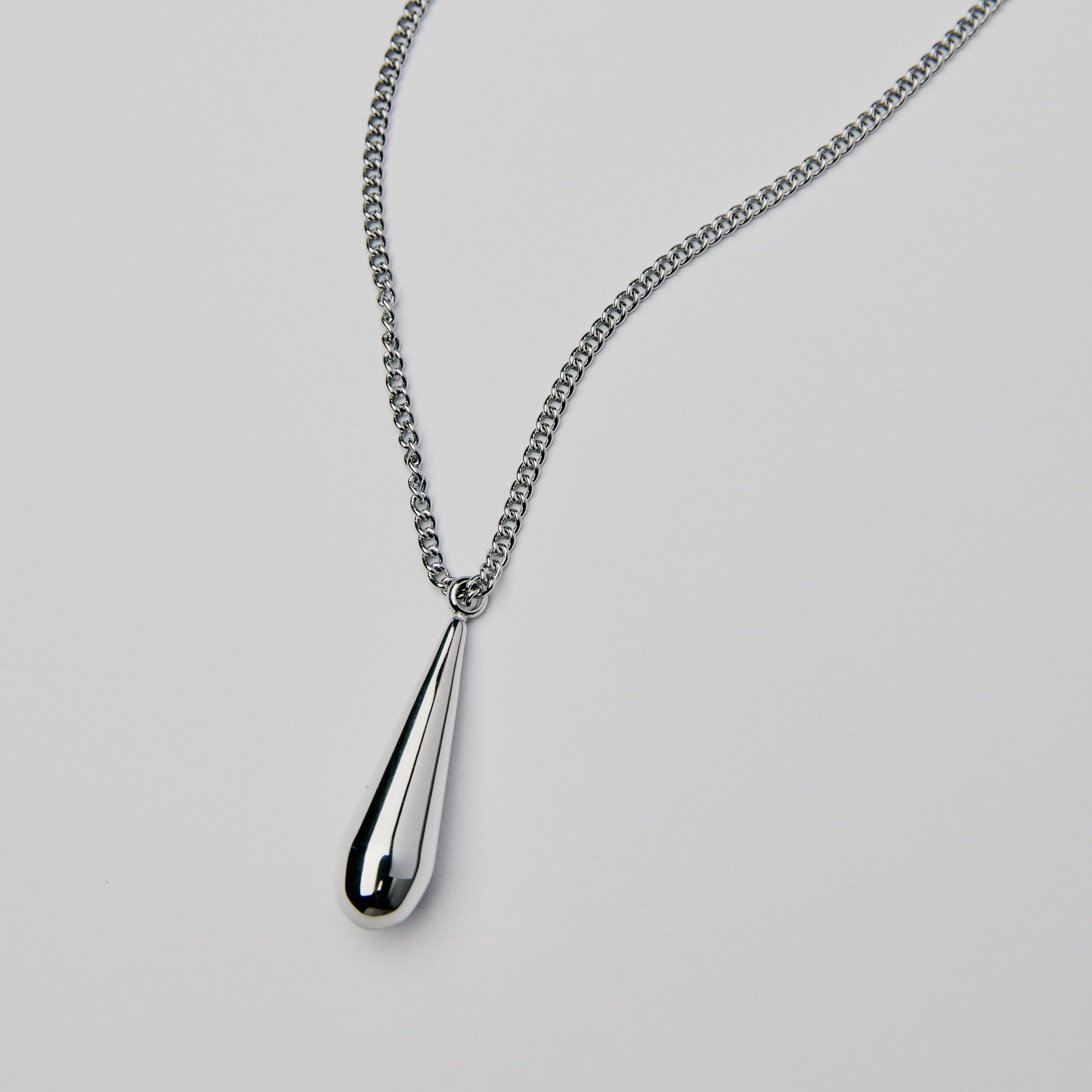 Inspired by a single drop of morning dew, the polished pendant catches the light from every angle. Simple, sculptural, and timeless.
