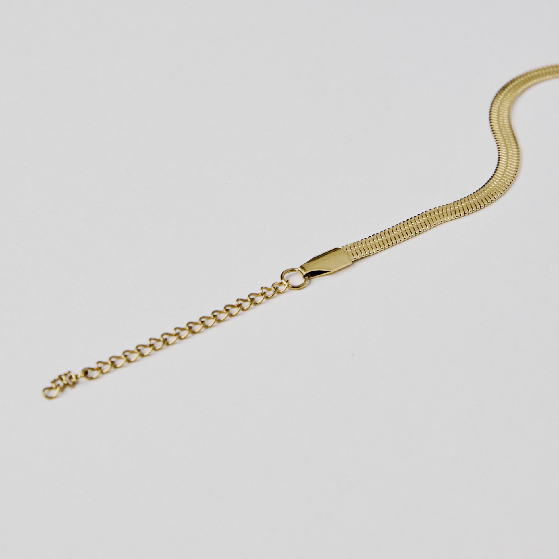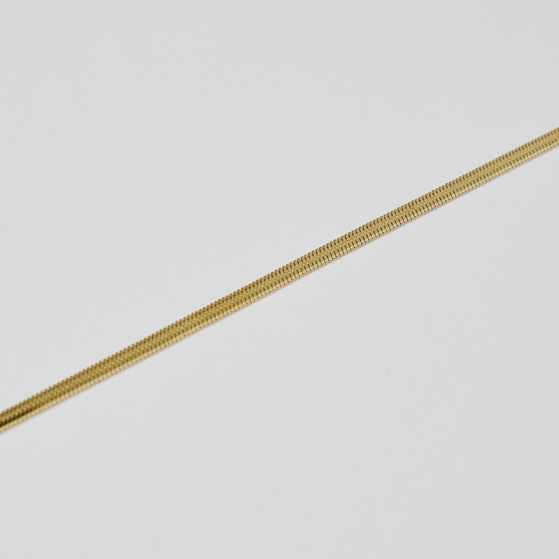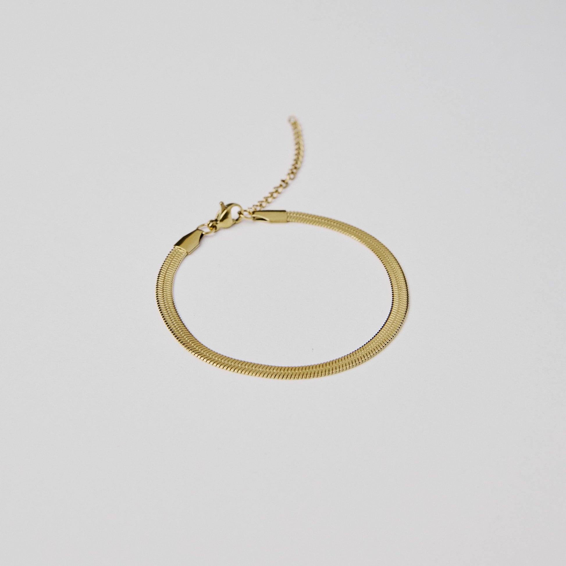 The Herringbone Bracelet lays flat against your skin, catching the light with every move, whether in warm gold or cool silver. Timeless in style and easy to wear, solo or layered.