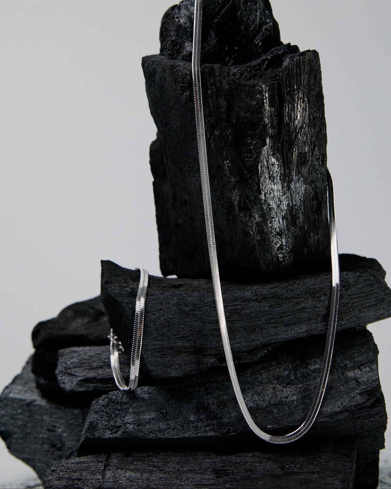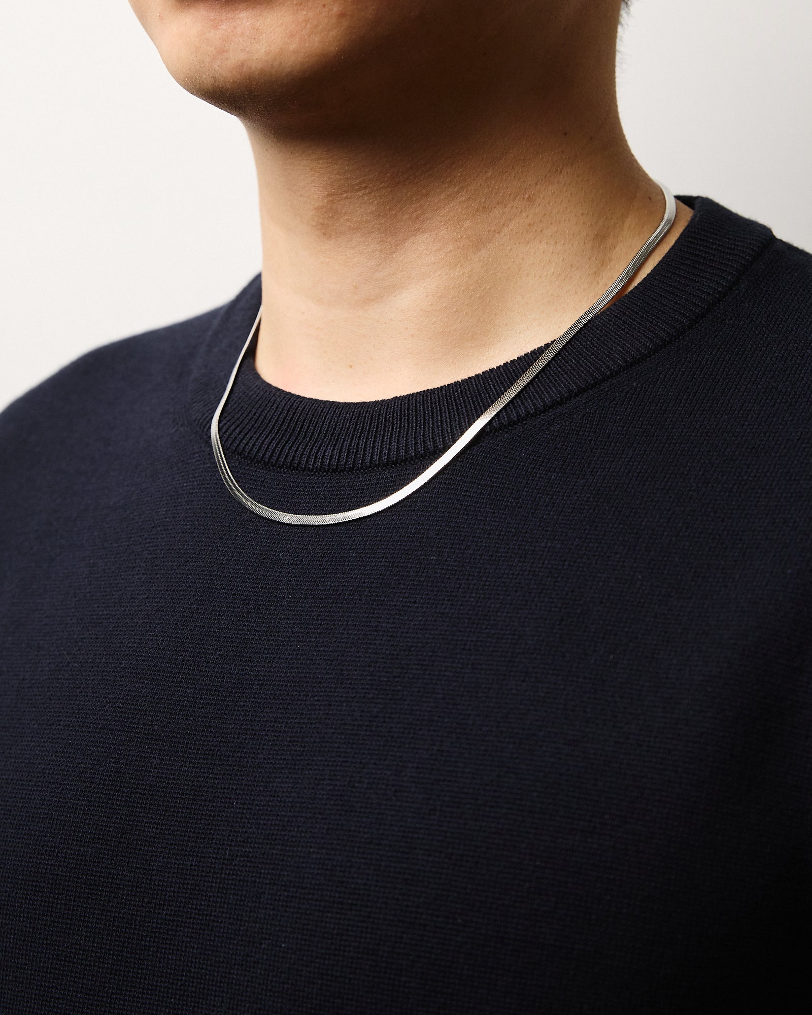 Smooth, flat links that lay effortlessly against the skin, catching the light with every move. A timeless design available in warm gold or cool silver, perfect solo or layered.
