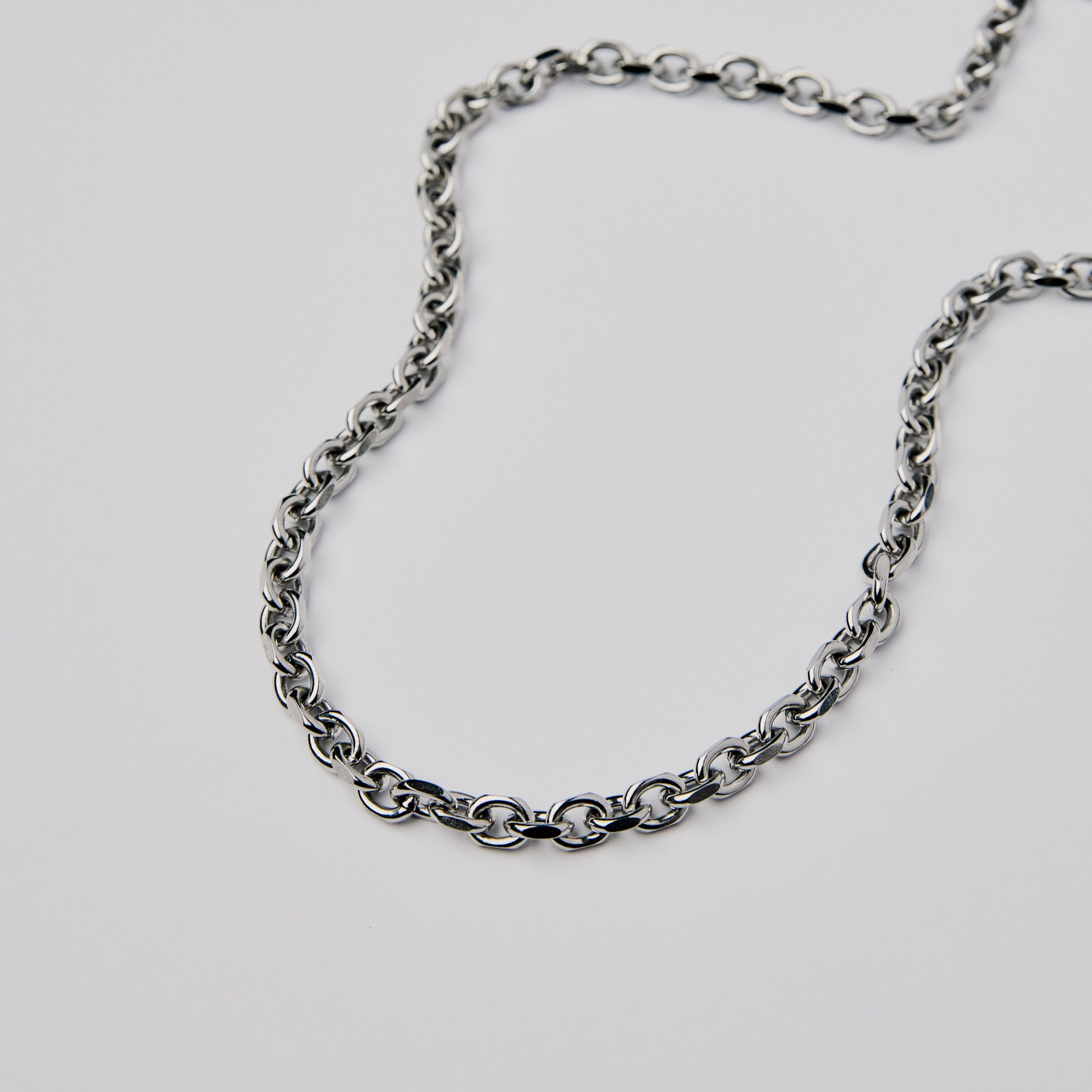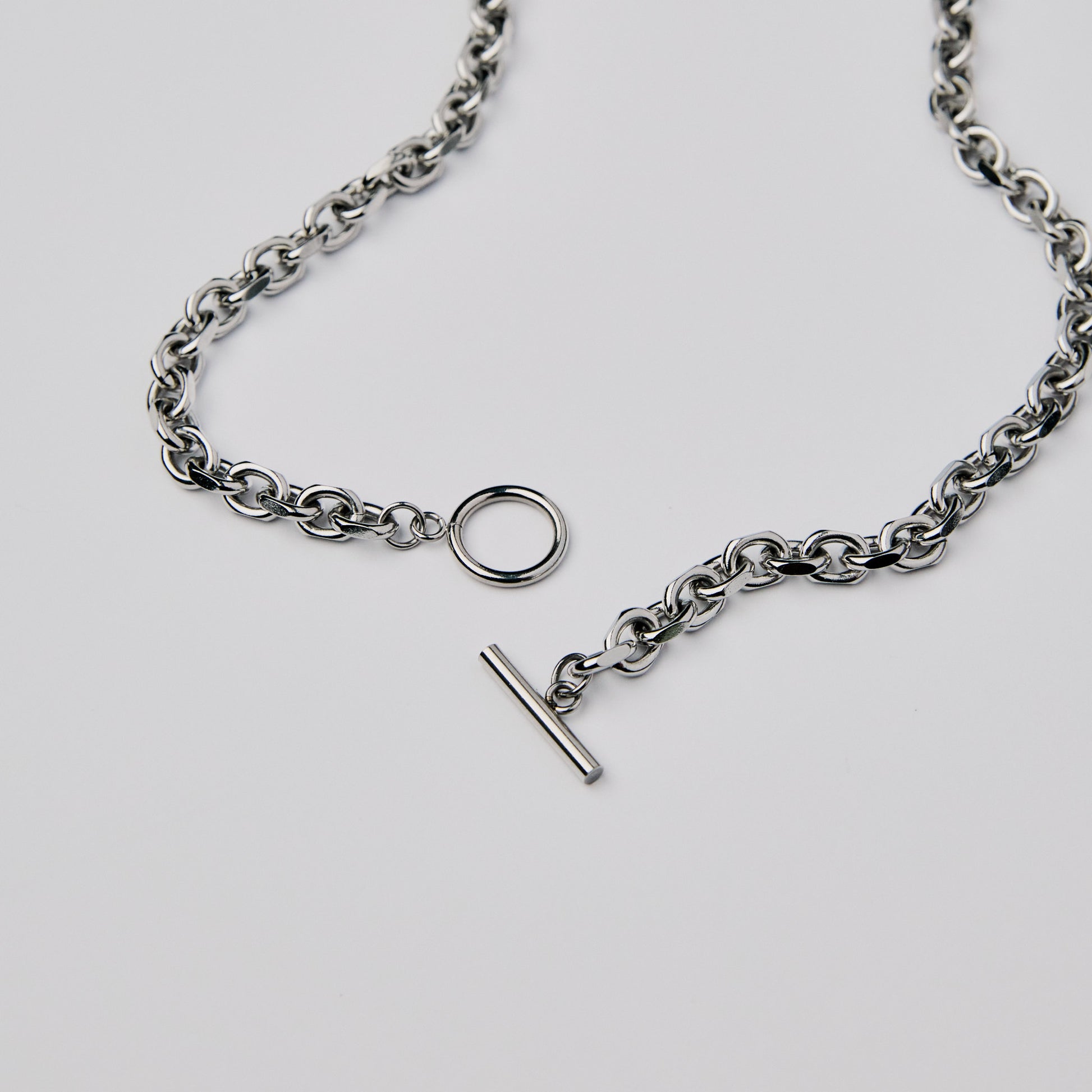 Polished oval link cable chain finished with a sleek T-bar clasp. A bold yet minimal piece you can wear solo or layered, day to night.